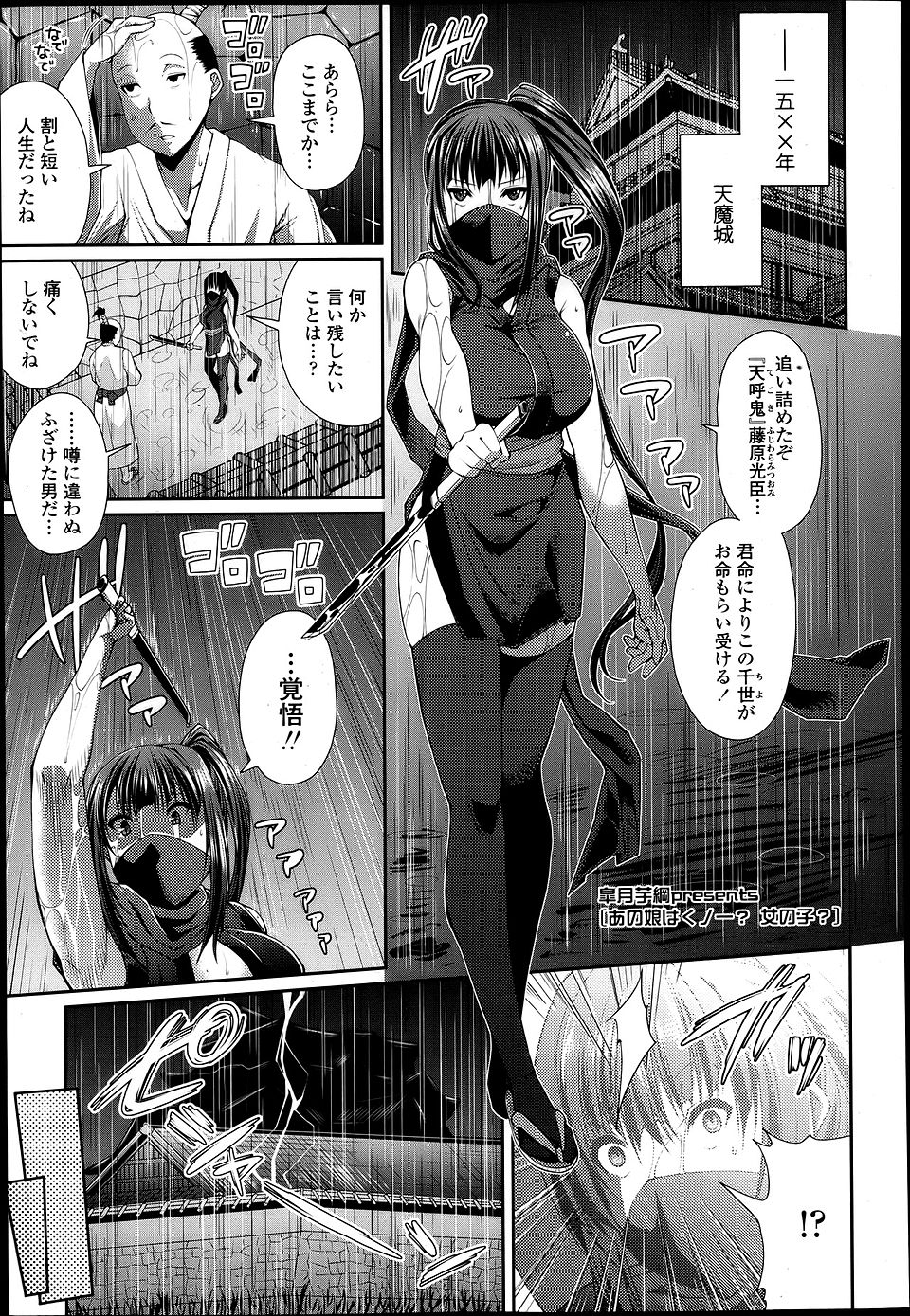 【エロ漫画】悪代官を追い詰めた巨乳くノ一が最後の一撃!と同時に雷に撃たれて、オナニー中の悪代官の子孫の元ににタ…