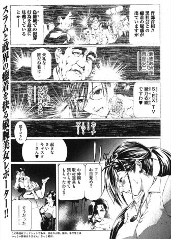 【エロ漫画】政治家と黒社会との癒着を嗅ぎ回っていた敏腕美人レポーターが捕らえられ、カメラの前で政治家たちに二穴…