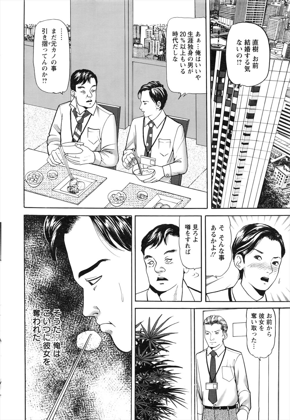 【エロ漫画】同僚に寝取られ結婚した元カノが浮気されているのは因果応報だが、DVまで受けているのは見過ごせず寝取…
