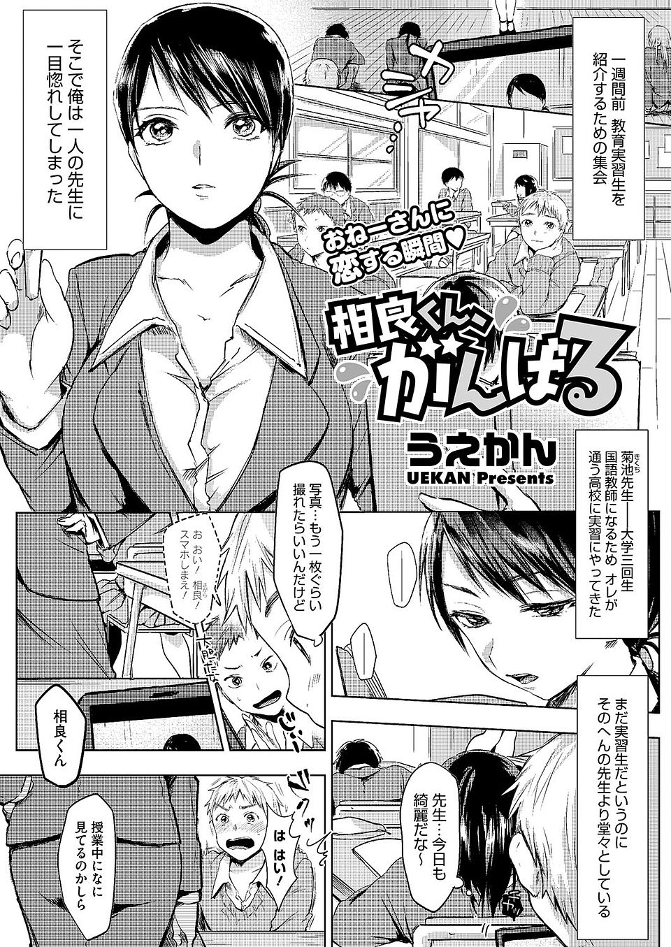 【エロ漫画】大好きな先生が他の生徒と付き合っているのを知って泣き出す童貞男子を教育実習の爆乳女子大生が優しく筆…