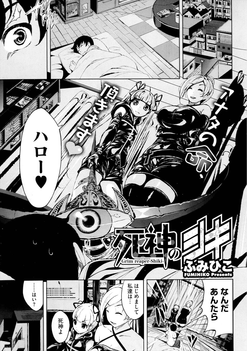 【エロ漫画】死神の姉妹がお迎えに来て最後に願いを叶えてやると言われたので、一目惚れした妹へプロポーズしたら結婚…