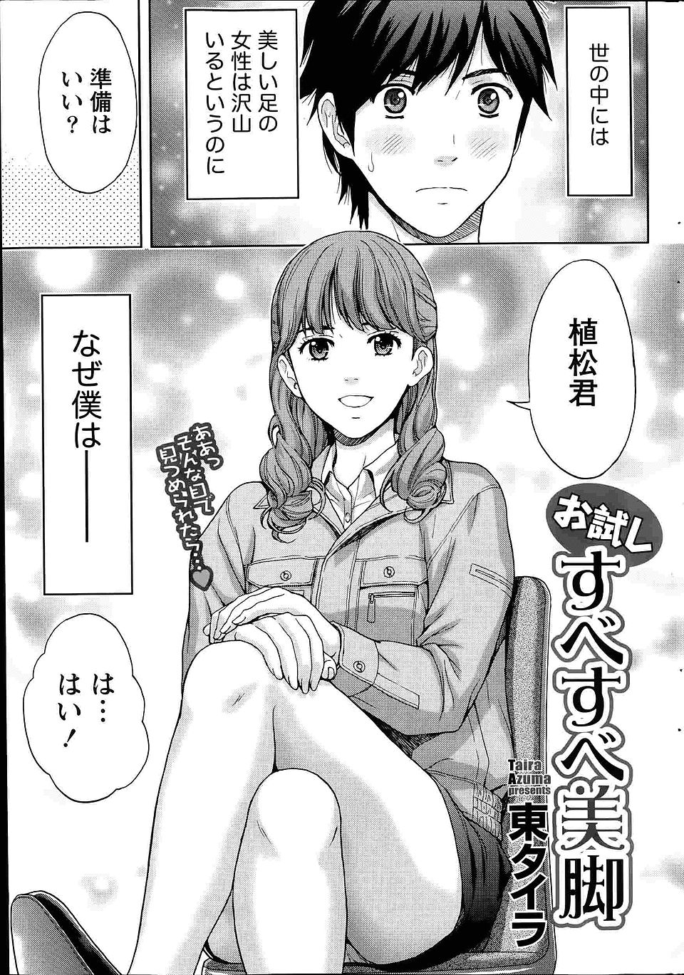 【エロ漫画】美脚に生まれてきたせいで男なのにストッキングメーカーのモデルにされてしまった男があこがれの先輩から…